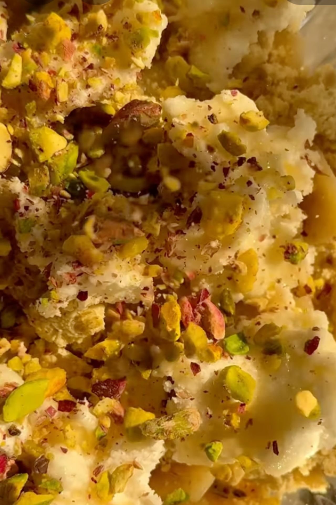 English قطايف سارة عبد الهادي 0 تعليقات 2 حفظ الوصفة I Did It 0قطايف وقت التحضير 75 دقيقة وقت الطبخ 8 دقيقة الوقت الكلي 1 ساعة 23 دقيقة لعدد أفراد : 10 المكونات لعدد أفراد ⇵ 1 أكواب حليب 2 أكواب ماء 1 أكواب سميد 2 أكواب دقيق 2 1⁄4 ملاعق صغيرة باكينج باودر 1⁄4 ملاعق صغيرة باكينج صودا 3 ملاعق كبيرة سكر رشة ملح 1⁄2 ملاعق صغيرة فانيليا التعليمات في الخلاط ، اخلط جميع المكونات معًا حتى تصبح ناعمة نفذت هذه الخطوة نصفي الخليط ونتركه يرتاح لمدة ٣٠-٦٠ دقيقة نفذت هذه الخطوة في مقلاة ساخنة ، قم بطهي الخليط كما هو موضح في الفيديو ولفه بمنشفة نفذت هذه الخطوة Rate this recipe: Related Recipes قطايف سكالانس عجينة قطايف