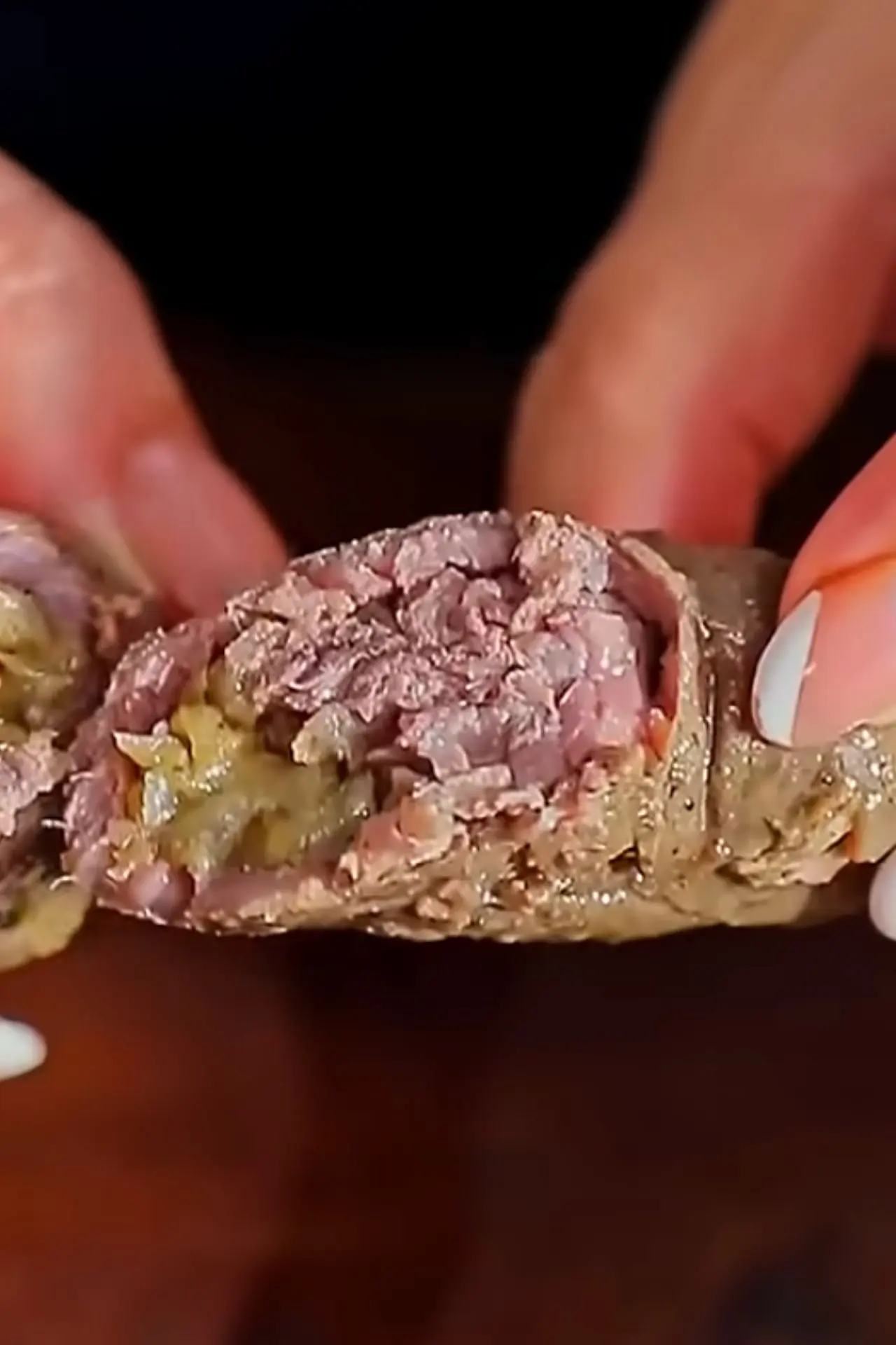 1. Add the thin slices of boftek to a bowl and season with salt, pepper, nutmeg, seven spices, mustard, and onion water. Mix well.