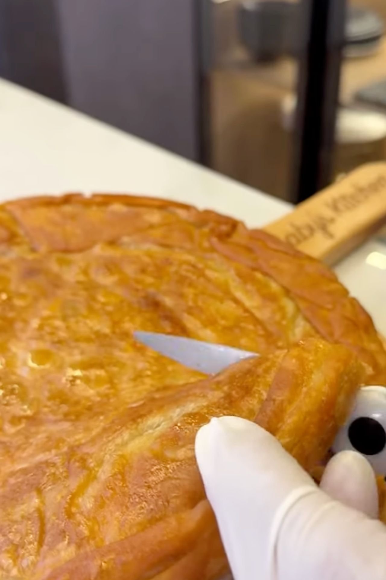 Place some minced meat along the bottom edge. Roll up into a cylindrical shape. Repeat for all remaining phyllo sheets and minced meat. Curl them around and place in a baking tray brushed with ghee, brush some ghee on top once placed.